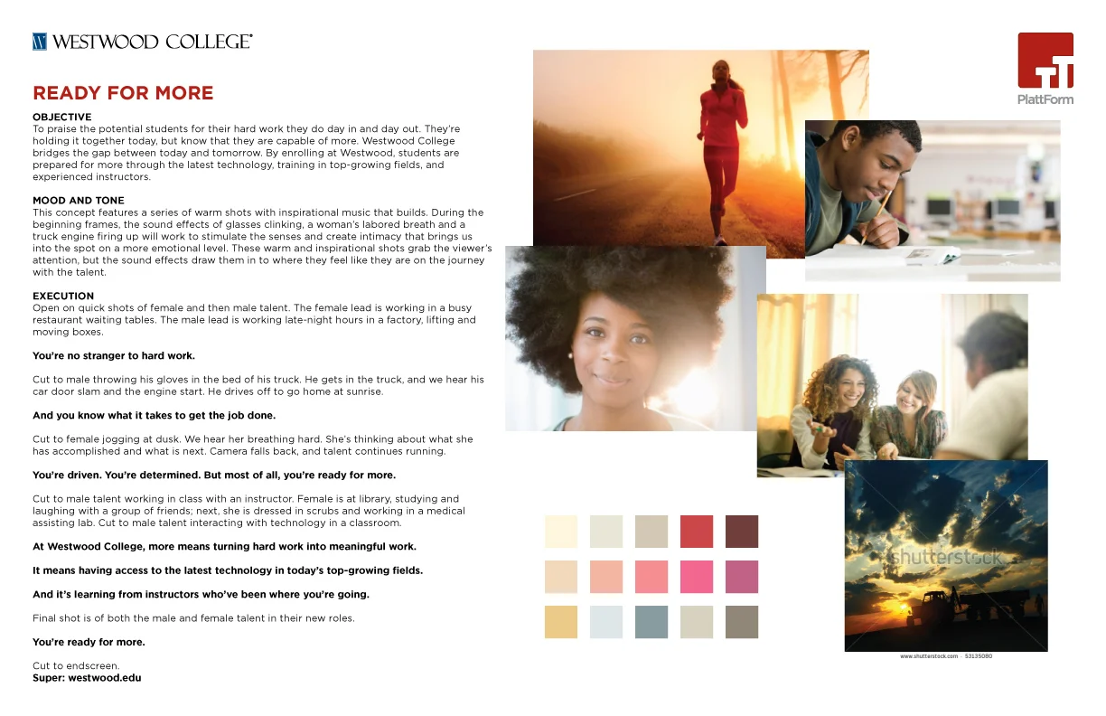 ACD/copywriter for Westwood College Ready For More campaign.